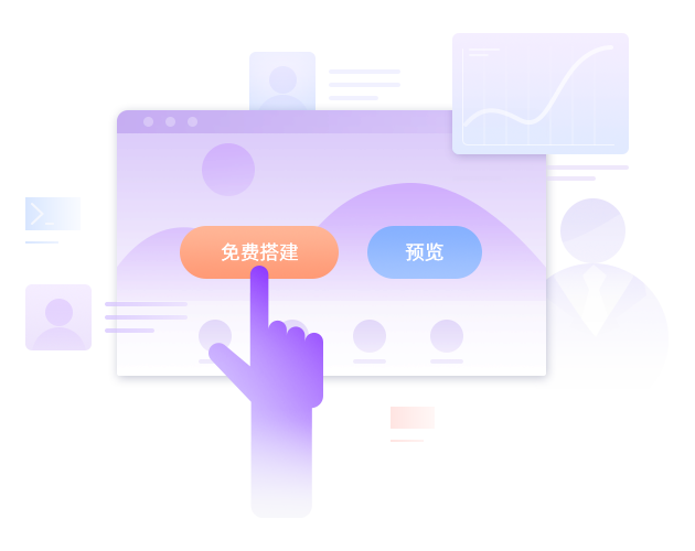 海量模板素材 / 丰富功能控件 / 拖拽式自由操作 / 后续维护便利