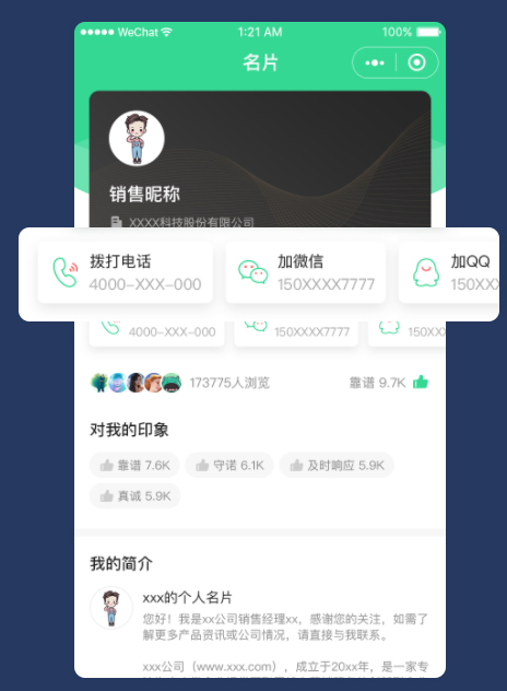 | 智能名片功能 | 名片创建 | √ | √ | √ |